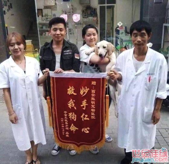 狗有病,去宠物医院,治好了。送锦旗表谢意。这字写的高大上