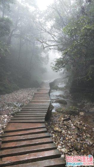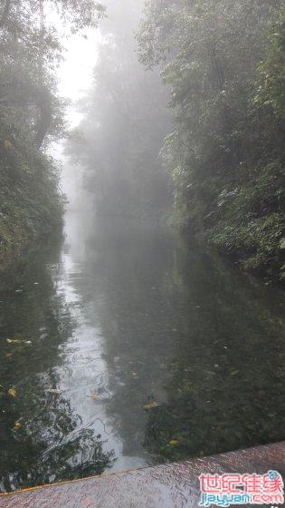 这里的雾气仍然很浓,只能看到十米左右的地方。我尝试着眺望湖心,希望能看到对岸。但就像看一幅水墨画的留白,只烟雨蒙蒙的一片。……静谧……却于无声处起波澜。那对情侣说,他们到时,渡船刚离岸,叫船工撑回来一下下。船工说游过去也就十来分钟……等着好了。过了一会儿,走在我们后面的几个游客一边拍着照片,一边也慢悠悠溜达到了这个山中静谧的小码头,头发尖儿上还挂着小水珠子。