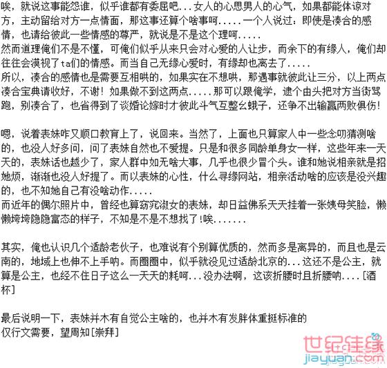 。总之可能由于这些种种,此男与表妹磕磕碰碰也有好几年了,却总是没成正果。